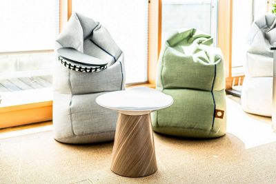 Der Pausenraum, der heute auch für agile Projektarbeit genutzt werden kann, ist zu einem Magnet für die Mitarbeitenden der Rheinwohnungsbau GmbH geworden. Für die gemeinsamen Pausen am "großen Tisch" wurde ein multifunktionale Pausentisch Lösung geplant, die zugleich auch als Besprechungsmöglichkeit genutzt werden kann. Sitzsäcke laden ein zur Entspannung. Gezielt ausgewählte Accessoires sorgen für die gewünschte gemütliche Atmosphäre im Raum.